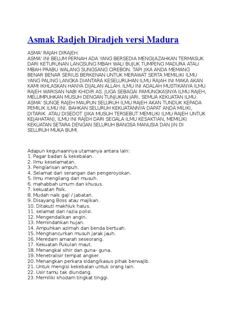 Idza Aroda Syaian Ayyakulalahu Kun Fayakun : Asmak Radjeh Diradjeh Versi Madura - Check spelling or type a new query.